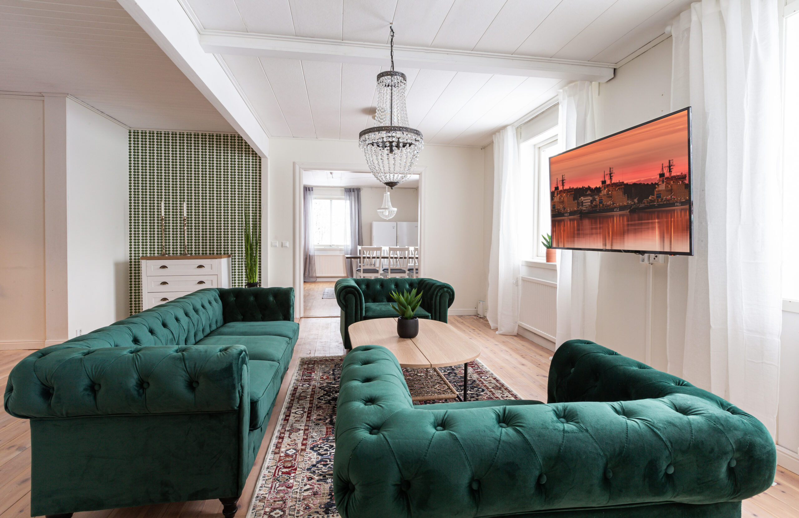 Tvåplanshus om totalt 233 kvm med två lägenheter. Möjlighet att hyra hela huset eller en separat lägenhet. Den ena lägenheten består av tre sovrum med fyra bäddplatser och den andra våningen består av fyra sovrum med sex bäddplatser. Fullt utrustat kök, badrum med tvättmaskin och torkskåp samt allrum finns på båda våningarna. Alla sovrum är utrustade som ett standard-hotellrum med TV, skrivbord, garderober och dörrhandtag med kodlås. Två uppsättningar handdukar och sängkläder ingår för samtliga boende. Parkeringsplatser med motorvärmare finns i anslutning till huset. Wi-Fi ingår. Kontakta oss för prisförslag.OBS: Nedanstående formulär är för att skicka in intresseanmälan på det objekt du nu tittar på. Om du vill skicka in en allmän intresseanmälan så gör du det här.